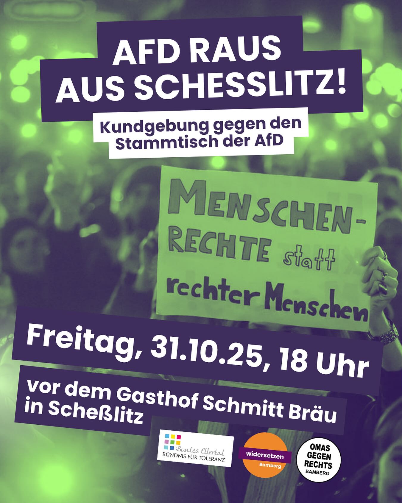 Kommt am Freitag zur Kundgebung gegen den AfD-Stammtisch in Scheßlitz!