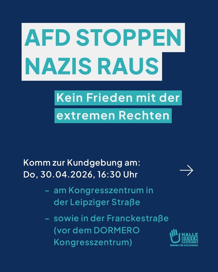 Geht mit uns entschlossen und gewaltfrei gegen die AfD und die fortschreitende Normalisierung extrem rechter Positionen auf die Straße! Setzen wir gemeinsam ein Zeichen für eine offene, plurale und solidarische Gesellschaft, in der die Würde und die Rechte aller Menschen zählen.