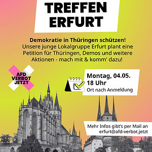 Achtung! Ursprünglich wurde hier auch eine Demo am 20.04. in Erfurt angekündigt, diese entfällt leider und wird am 23.05. nachgeholt! Wir kündigen sie dann nochmal an!
