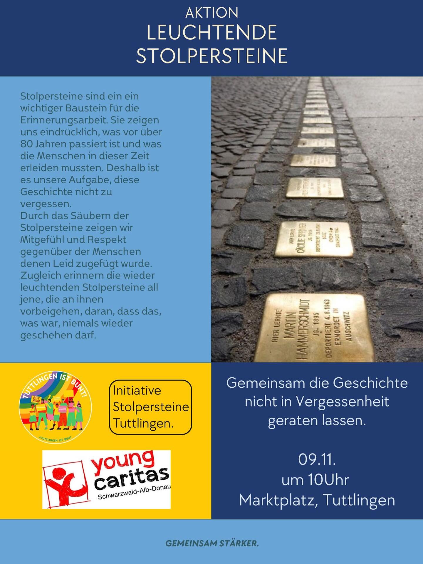 Gemeinsam die Geschichte nicht in Vergessenheit geraten lassen: Sonntag ist wieder unsere Aktion „Leuchtende Stolpersteine“.