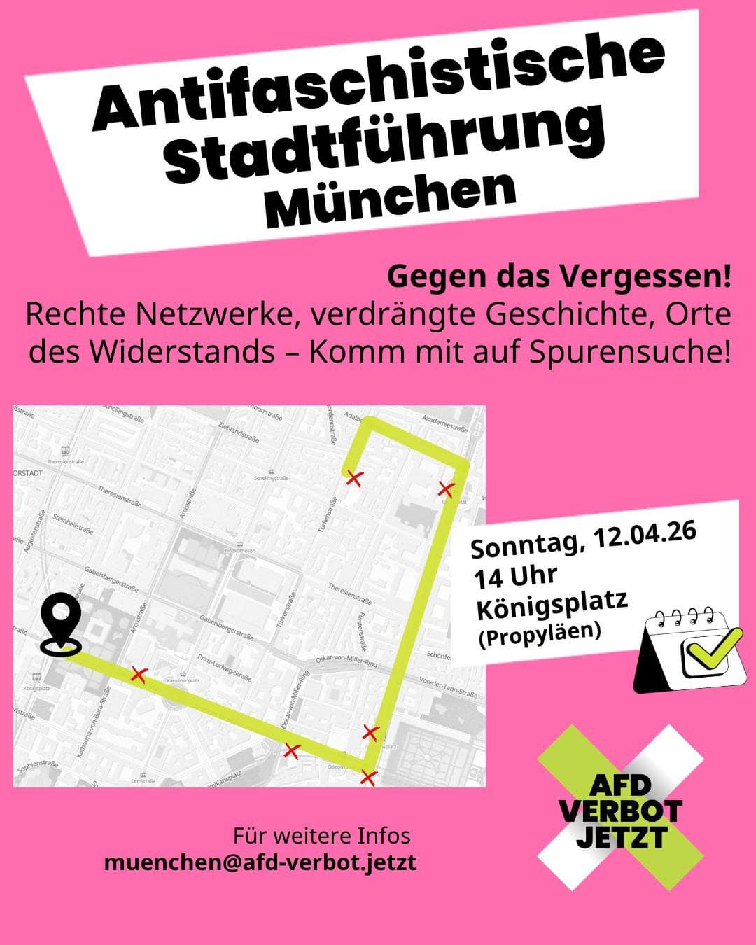 Rechte Ideologien haben Geschichte – und eine Gegenwart. Auf unserer antifaschistischen Stadtführung machen wir sichtbar, wo Ausgrenzung, Verfolgung und Gewalt organisiert wurden und wo Menschen sich dagegen gewehrt haben. Gemeinsam setzen wir ein Zeichen gegen das Vergessen!