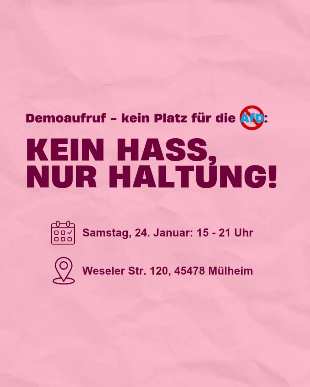 Die AfD ist eine im Kern faschistische Partei. Sie ist eine ernsthafte Gefahr für unsere Demokratie und für die gesamte Gesellschaft, ganz besonders aber für Jüdinnen und Juden, Muslim*innen, Geflüchtete und ihre Unterstützer*innen, Migrant*innen, BIPoC, queere Menschen, linke Politiker*innen, antifaschistisch Engagierte und für alle, die nicht in ihr rechtes Weltbild passen. Die AfD will demokratische Grundrechte abschaffen, soziale Errungenschaften rückgängig machen, sie legitimiert rechte Straßengewalt und spaltet unsere Gesellschaft. Wir sagen: Schluss damit!