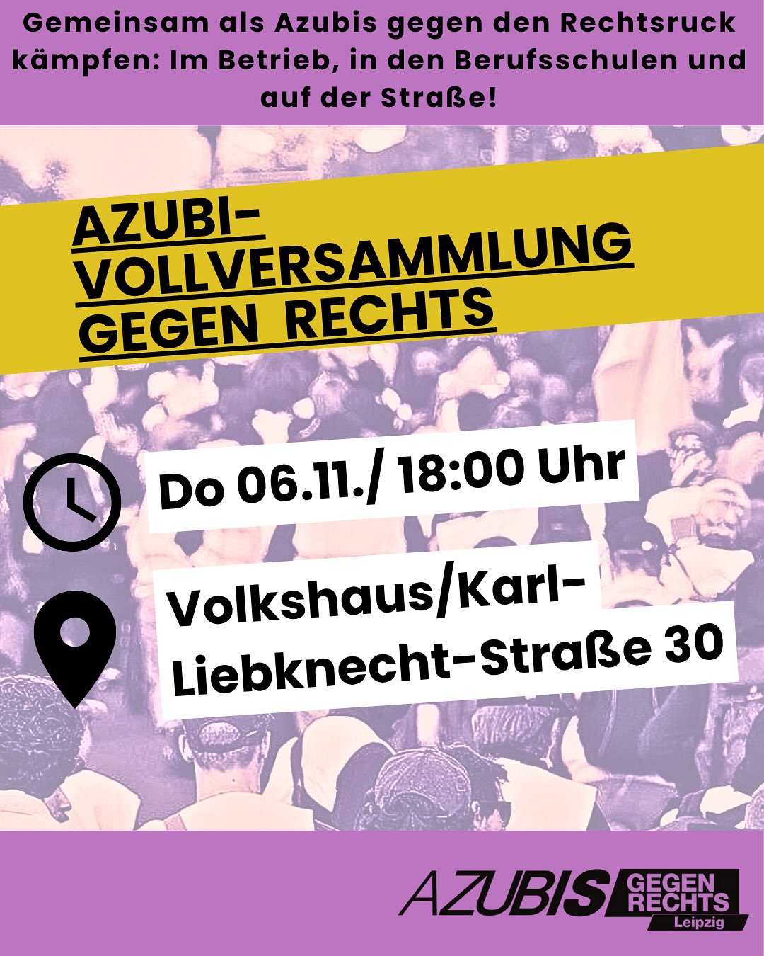 Wir wollen mit möglichst vielen Azubis zusammenkommen um uns auszutauschen und gemeinsam zu überlegen, was wir gegen den Rechtsruck tun wollen, ob in Berufsschule, im Betrieb oder auf der Straße.