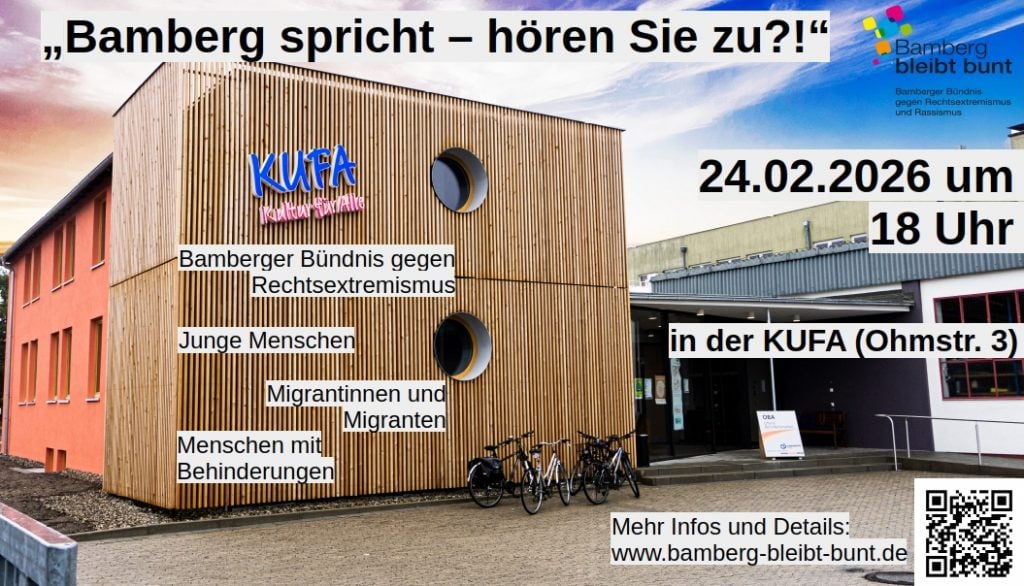 Unter dem Leitgedanken „Demokratie beginnt mit Zuhören“ lädt das Bamberger Bündnis gegen Rechtsextremismus und Rassismus zu einer besonderen Veranstaltung im Vorfeld der OB-Wahl ein. Das Format dreht die gewohnte Perspektive um: Nicht die Kandidierenden sprechen – sie hören zu.