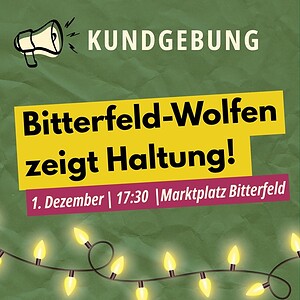 Gemeinsam werden wir zeigen: Unsere Stadt gehört nicht den Profiteuren der Angst, sondern denjenigen, die offen und solidarisch leben wollen. Bitterfeld-Wolfen ist eine Stadt mit Courage.