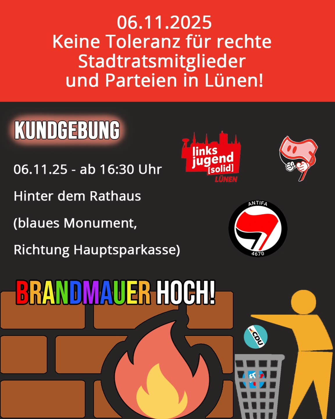 Mit einer Gegenkundgebung wollen wir darauf aufmerksam machen, dass die CDU und AfD mit ihrer Vielzahl an Sitzen eine Gefahr für eine humane und soziale Politik auf kommunaler Ebene darstellen.
