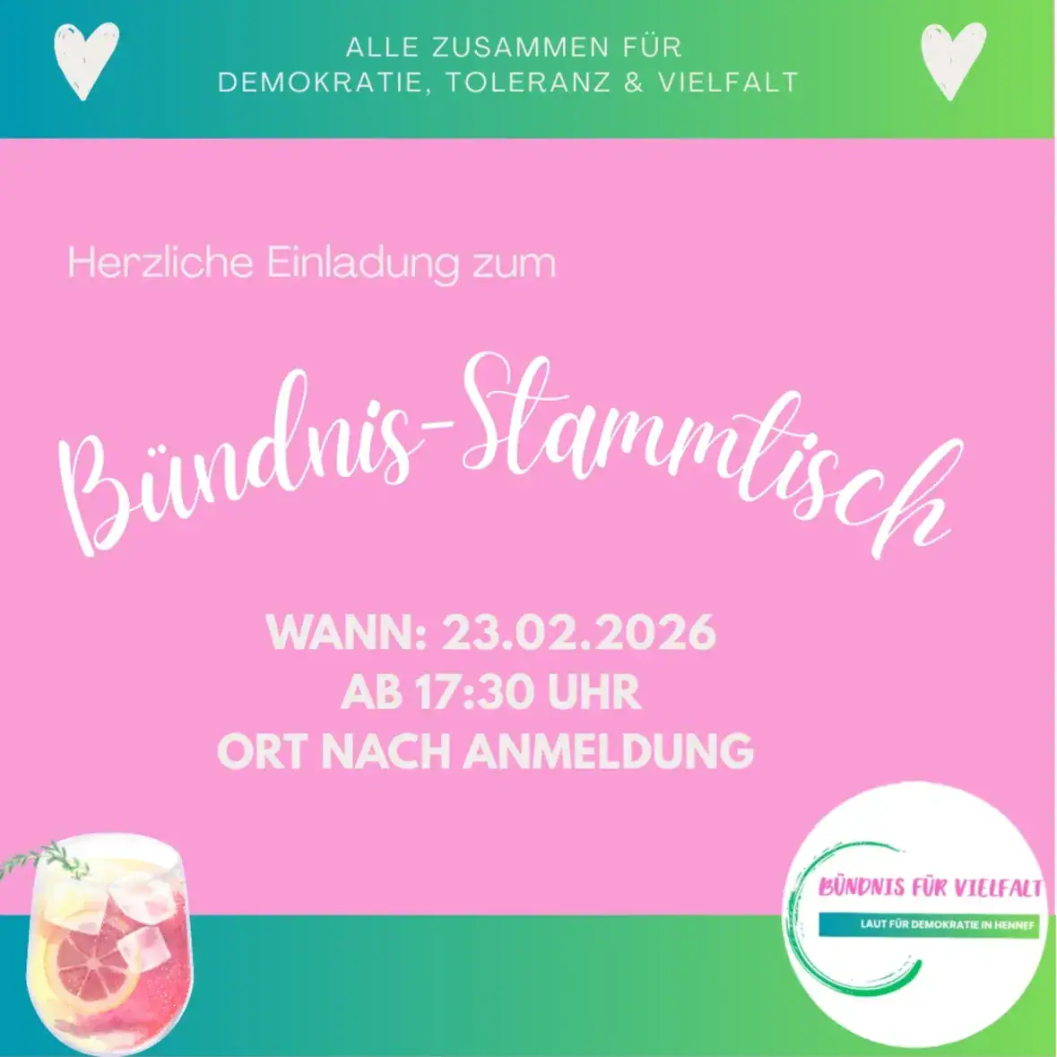 Ob ihr schon lange dabei seid oder einfach mal reinschnuppern möchtet – kommt vorbei, bringt eure Perspektiven mit und lasst uns gemeinsam Demokratie, Toleranz und Vielfalt in Hennef stärken.