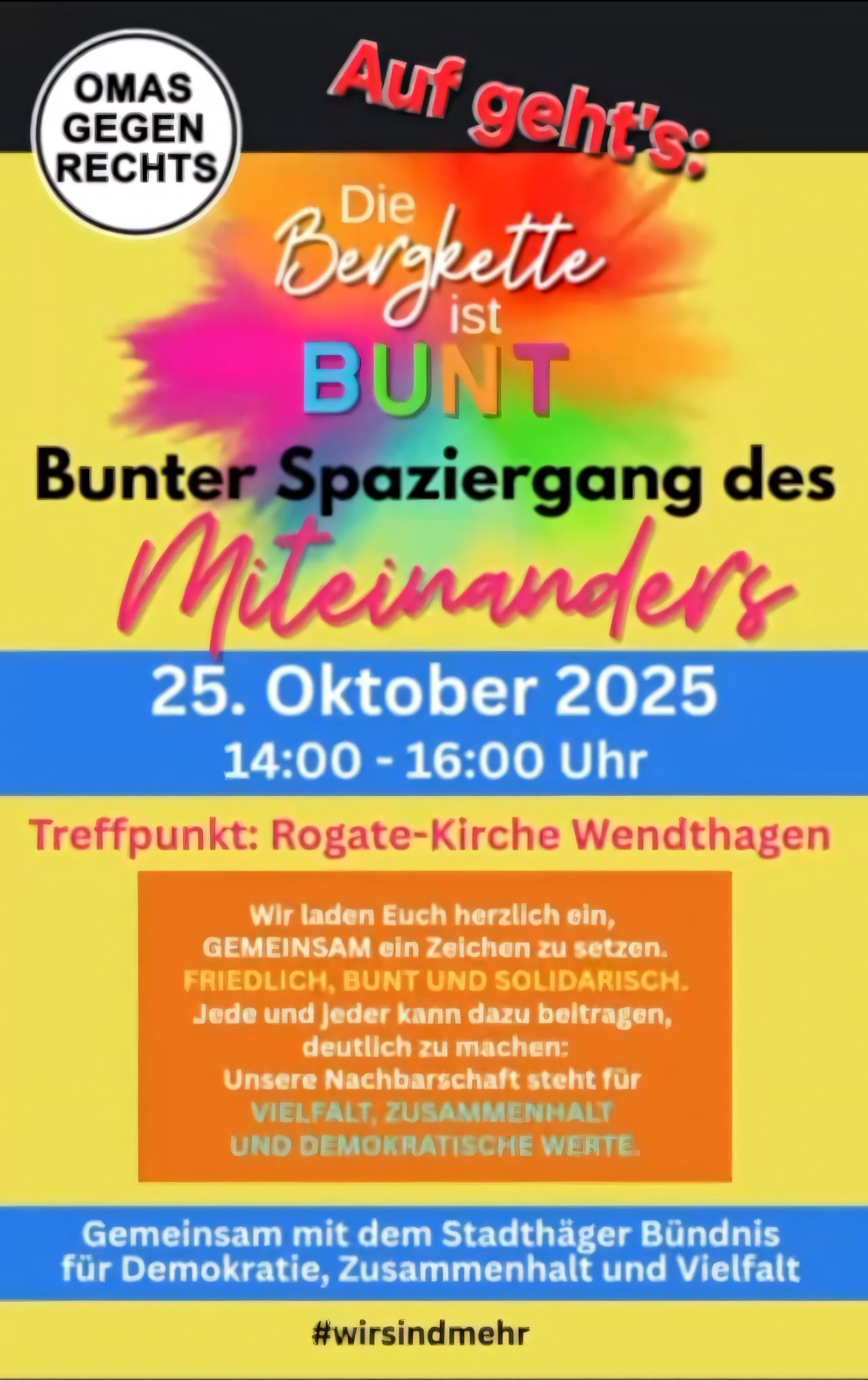 Wir laden Euch herzlich ein, gemeinsam ein Zeichen zu setzen. Friedlich – bunt- solidarisch.