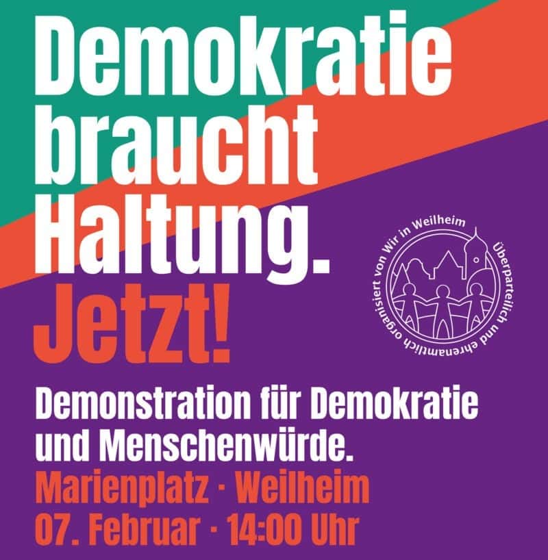 Mit dieser Demonstration verleihen wir dem vom Weilheimer Stadtrat einstimmig verabschiedeten „Bekenntnis zur Demokratie“ gemeinsam Nachdruck und Sichtbarkeit.