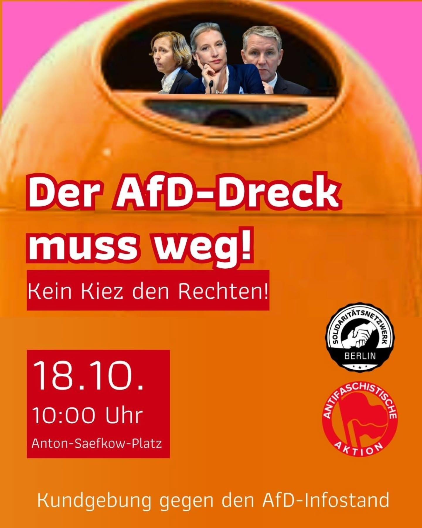 Die AfD will sich erneut in unserem Stadtteil mit einem Infotisch breit machen.