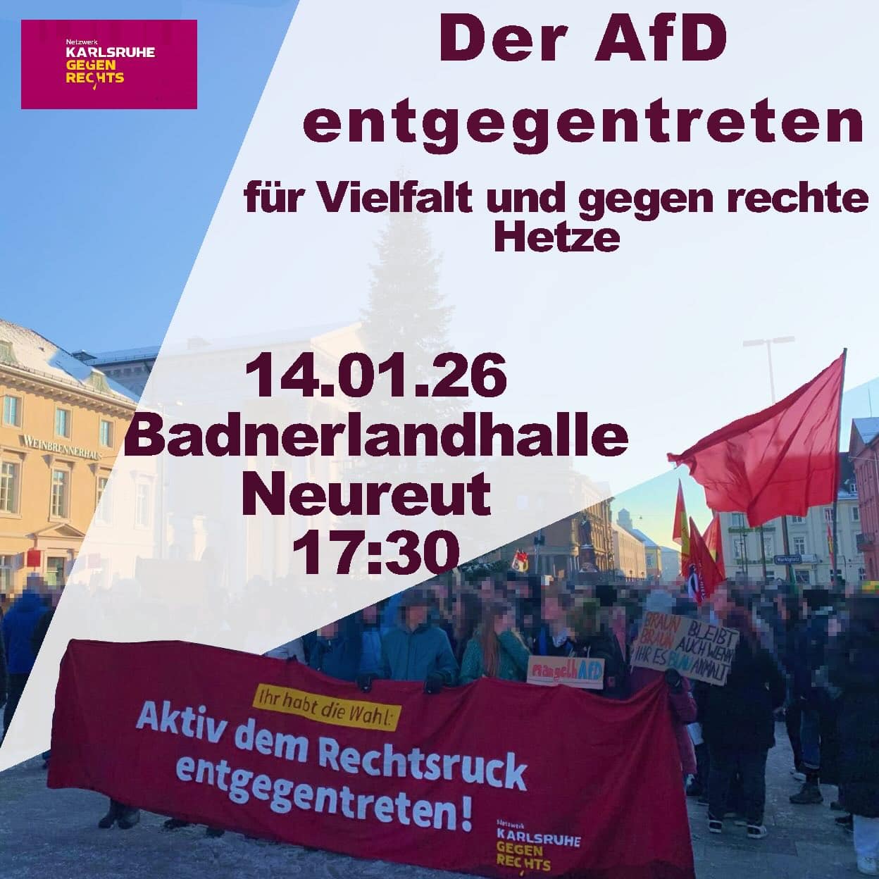 Das Netzwerk gegen rechts will dafür sorgen, es der AfD in Neureut wieder so ungemütlich wie möglich zu machen. Unser Protest will ihnen den Raum streitig machen.