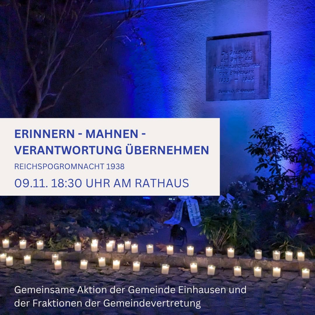 Am Sonntag lädt die Gemeinde Einhausen herzlich ein, gemeinsam an die Ereignisse der Reichspogromnacht zu erinnern – an der Gedenktafel neben dem Rathaus.