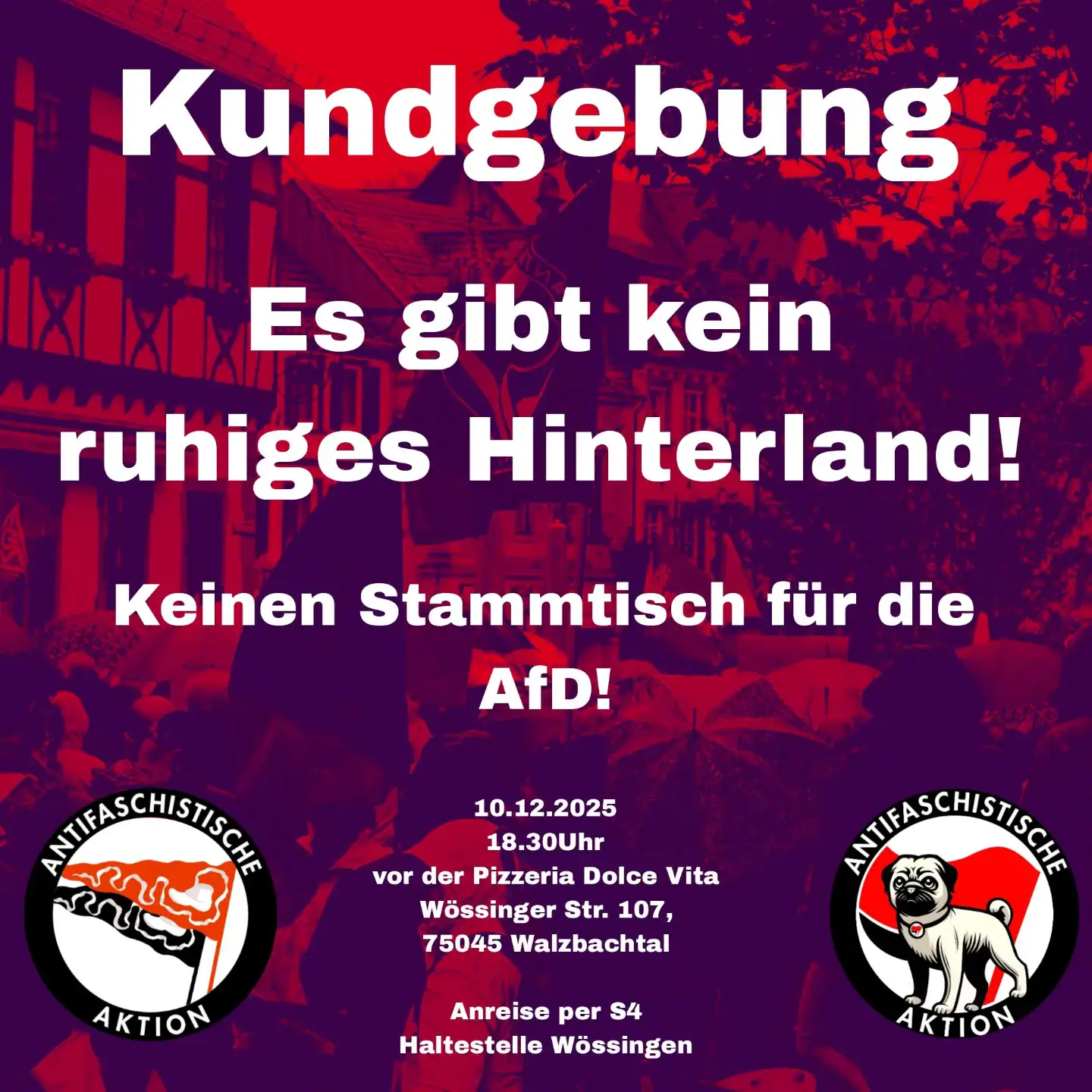 Trotz unseres Protestes beim letzten mal, möchte die AfD Fraktion Walzbachtal erneut einen Stammtisch abhalten.