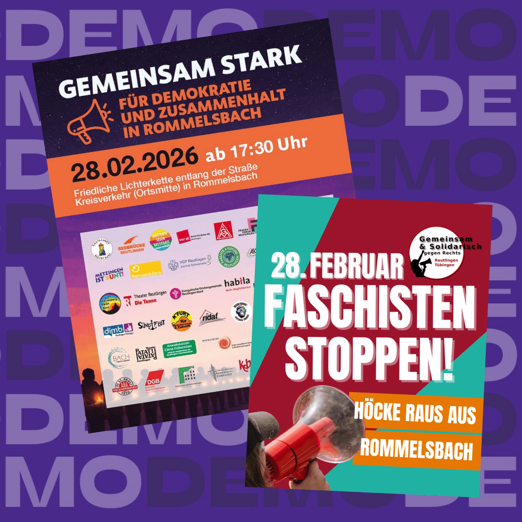 Am Mittwoch kommen u.a. der Faschist Björn Höcke und Max Gerner – AfD-Nachwuchspolitiker aus Reutlingen – nach Rommelsbach. Letzterer ist auch bei der Gründung der „Generation Deutschland“ im November 2025 in Giesen aufgetreten.