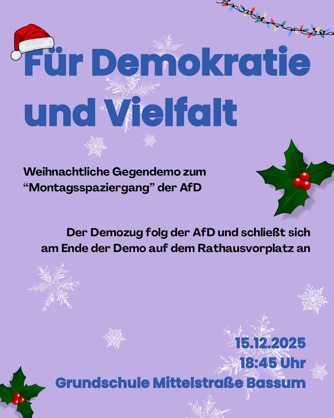 Weihnachtliche Gegendemo zum “Montagsspaziergang” der AfD