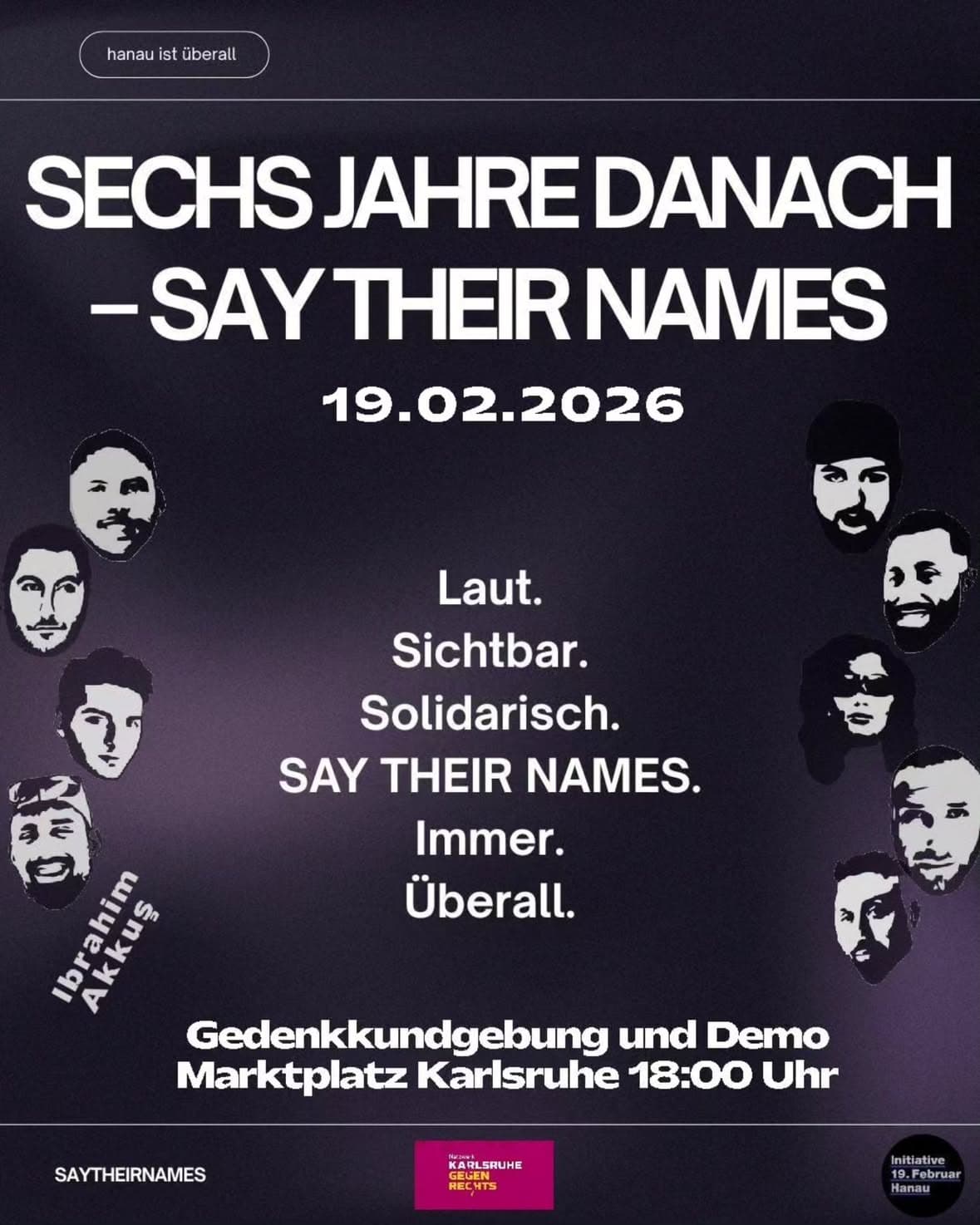 Darum rufen wir dazu auf, am 19. Februar gemeinsam zu erinnern und SAY THEIR NAMES überall sichtbar zu machen. SAY THEIR NAMES. IMMER. ÜBERALL.