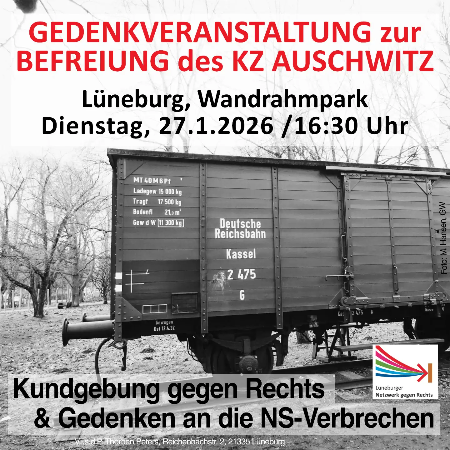 Das Lüneburger Netzwerk gegen Rechts ruft dazu auf, am 27. Januar gemeinsam zu gedenken und ein sichtbares Zeichen zu setzen.