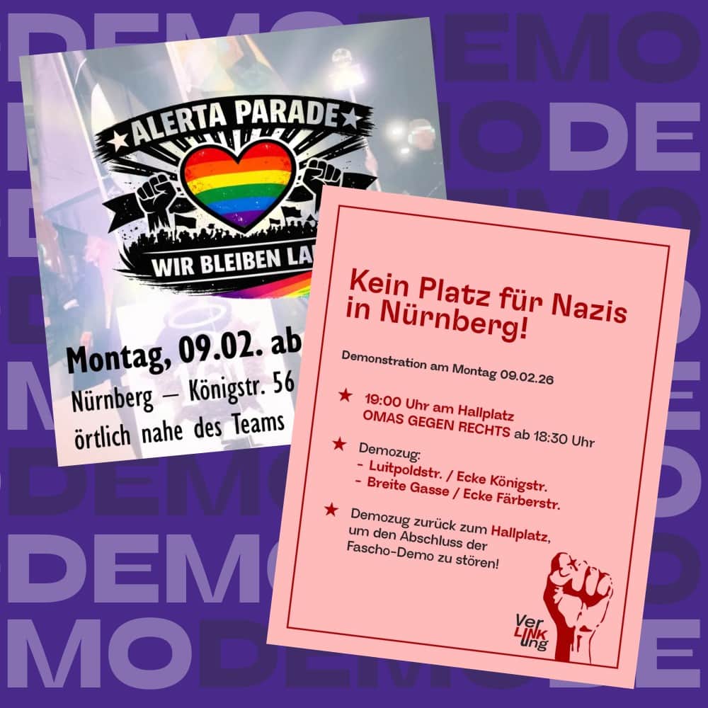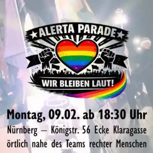 Am Montag bieten wir Nürnbergs faschistischen Aufmärschen und Polizeigewalt auf der Alerta-Parade erneut die Stirn. Laut, unmissverständlich, mit Ska und Liebe, Liebe, Liebe!