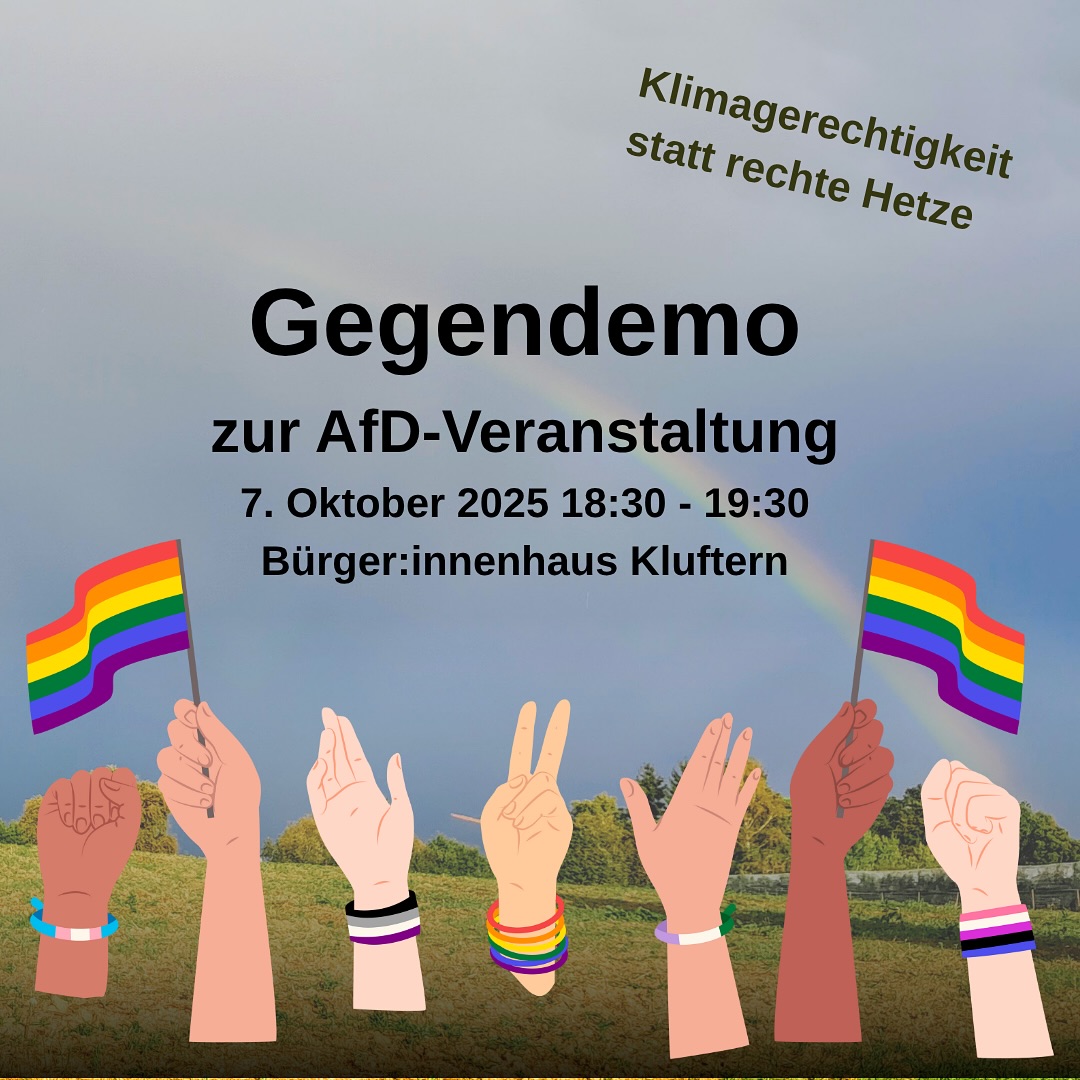 Kommt zur Demo Dienstag und zur Infoveranstaltung einen Tag später um 19:30 Uhr mit zwei Professoren aus der Region, ebenfalls im Bürger*innenhaus Kluftern.