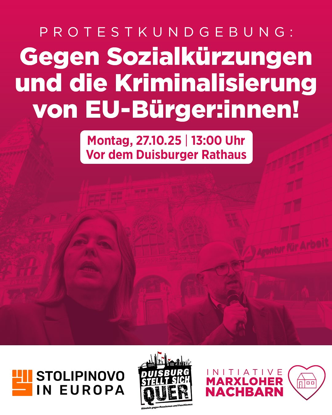 Am Montag protestieren wir gemeinsam gegen die geplanten Sozialkürzungen und die Kriminalisierung von Eu-Migrant:innen – kommt zum Rathaus!