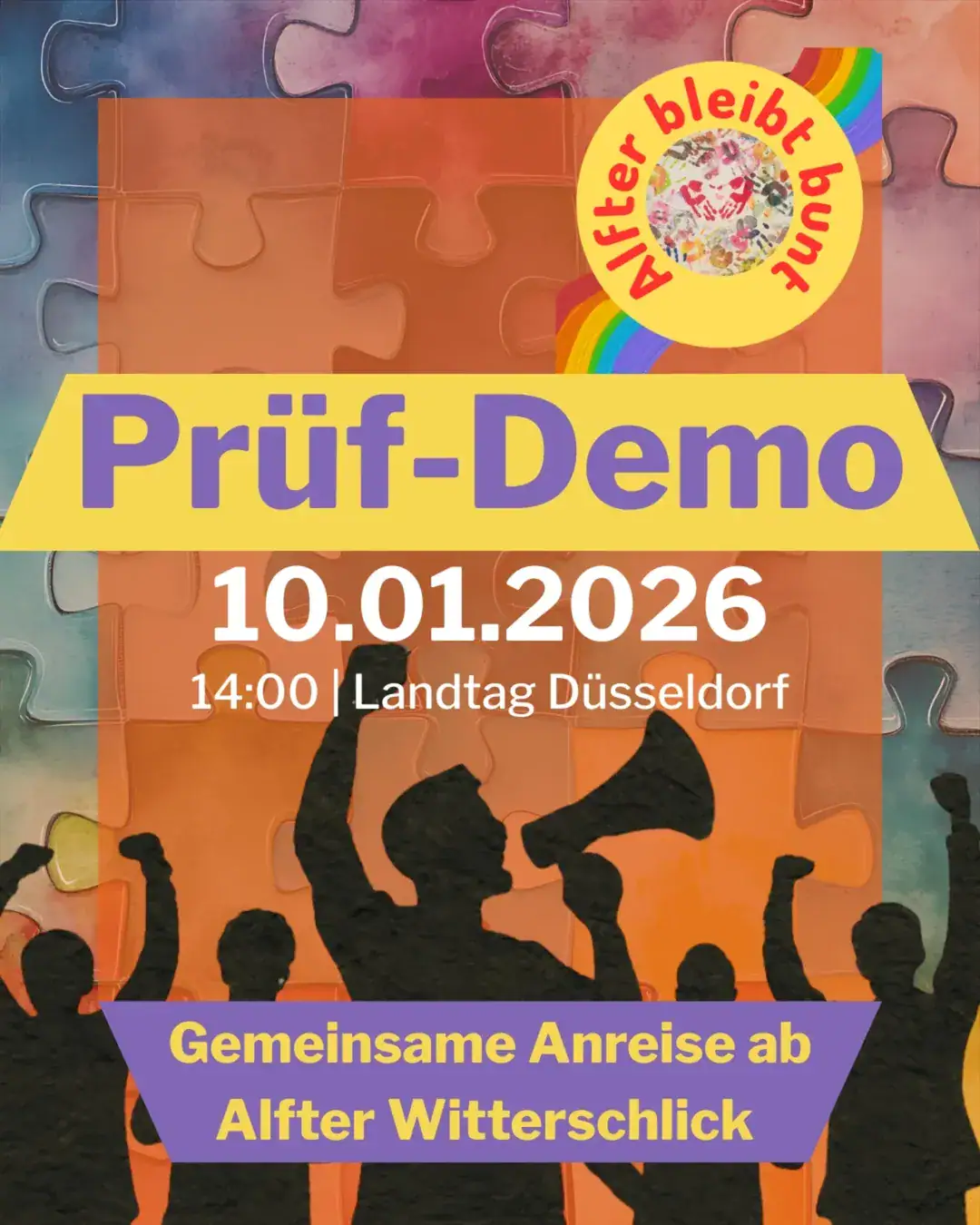Die Prüf! NRW-Demonstration findet am Samstag um 14:00 Uhr vor dem Landtag in Düsseldorf statt. Es geht darum, ein Zeichen für Demokratie, gegen Rechtsextremismus und zur Prüfung rechtsextremer Parteien zu setzen.