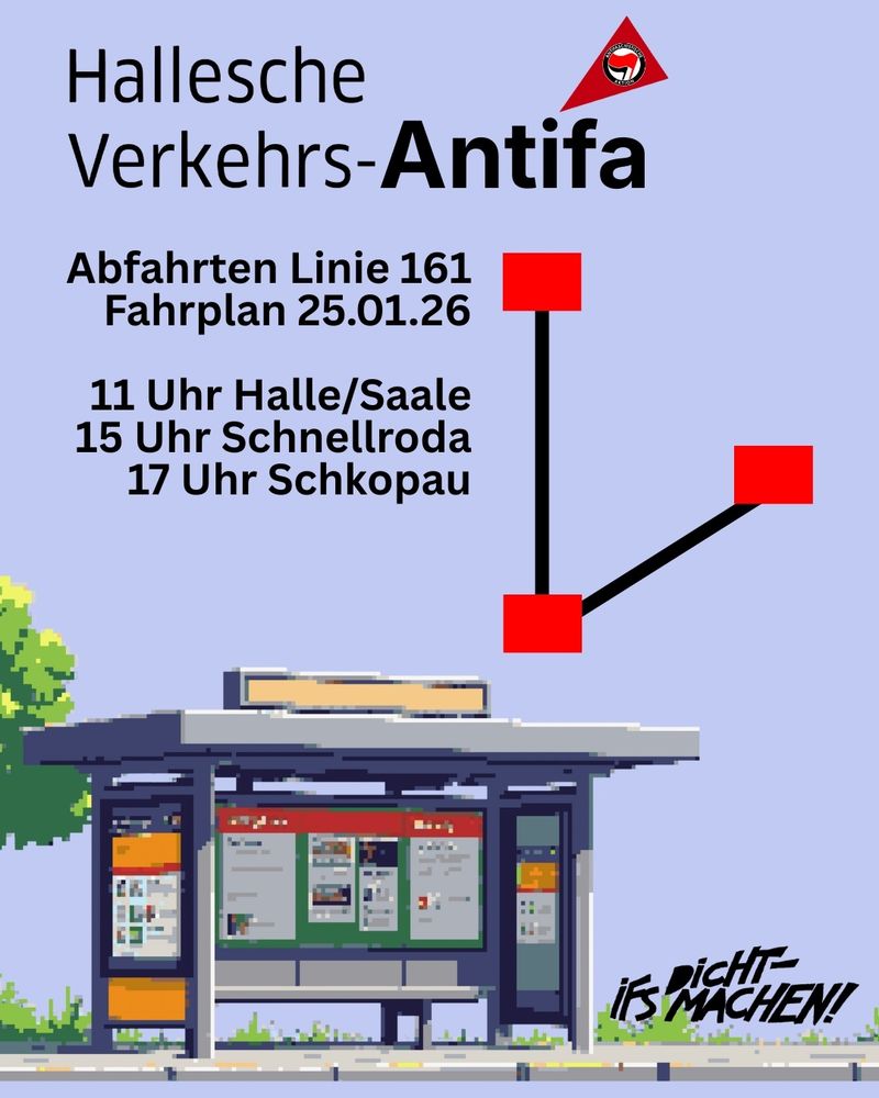 Danach geht es direkt nach Schkopau, wo Merseburger Antifaschist*innen gegen die IB-Villa demonstrieren – und dann wieder zurück nach Halle.