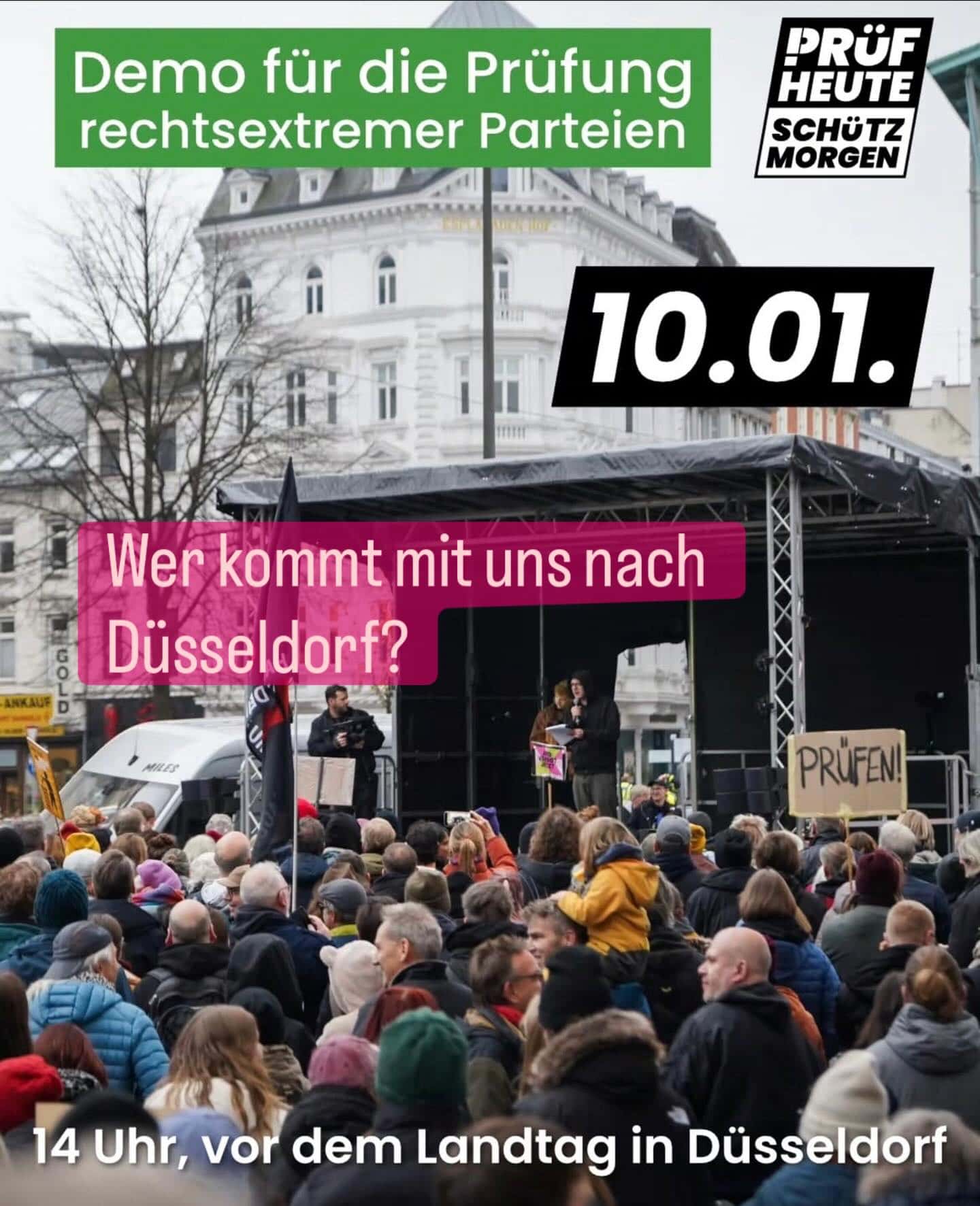 Mit Schwung ins neue Jahr: Wir fahren am Samsatg zur PRÜF-Demo nach Düsseldorf.
