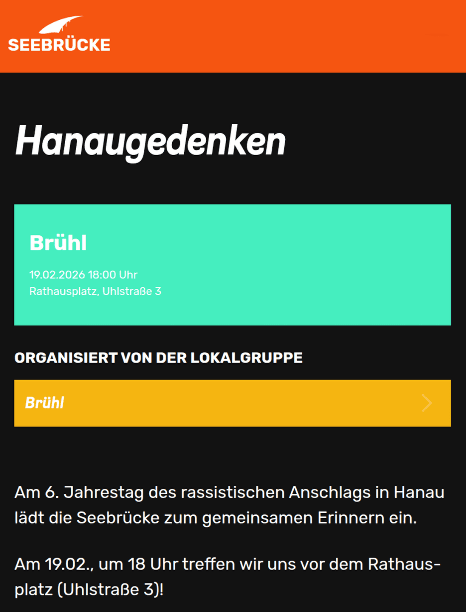 Am 6. Jahrestag des rassistischen Anschlags in Hanau lädt die Seebrücke zum gemeinsamen Erinnern ein.