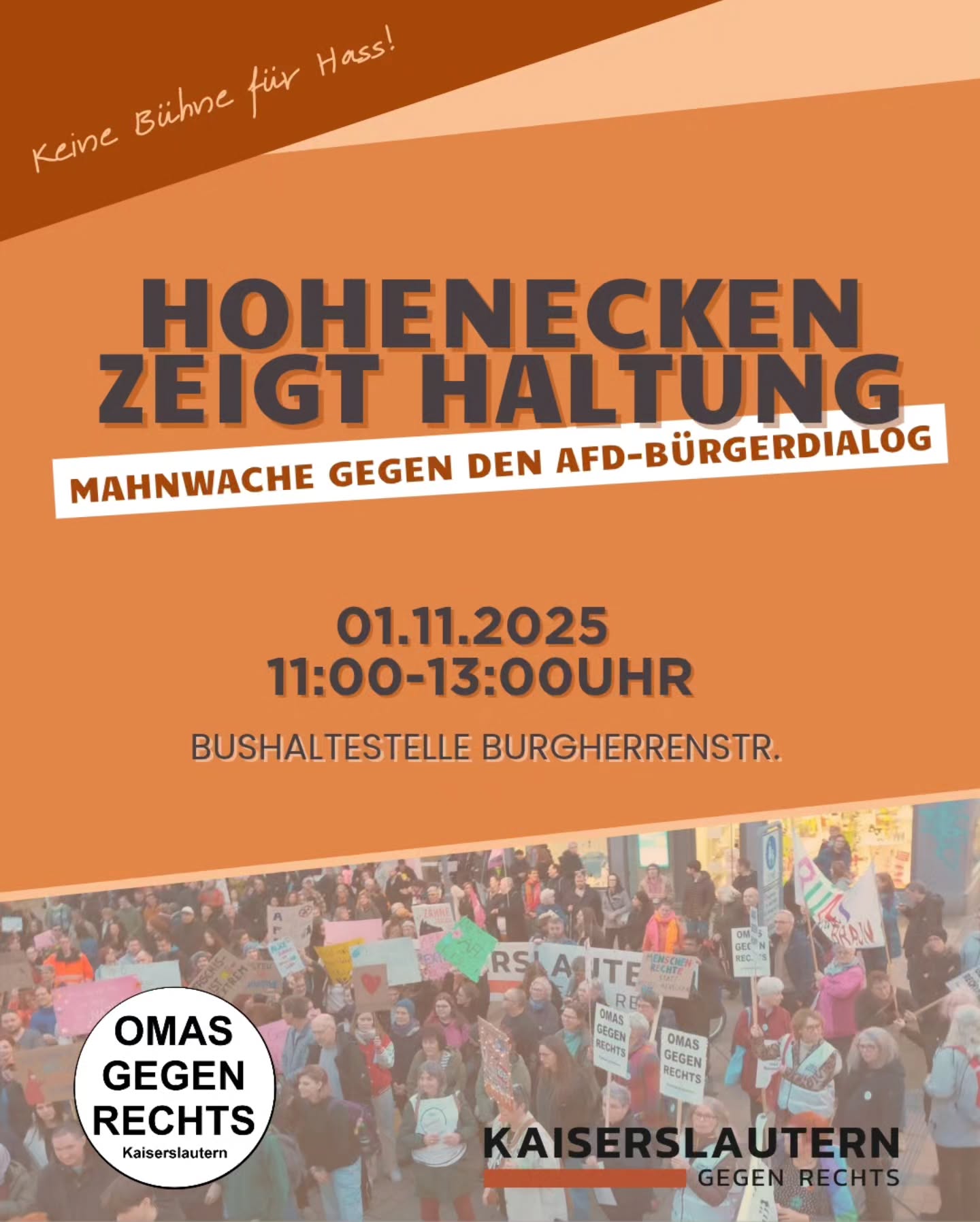 Als Reaktion rufen die Omas Gegen Rechst Kaiserslautern gemeinsam mit dem Bündnis Kaiserslautern gegen Rechts zu einer Mahnwache auf.