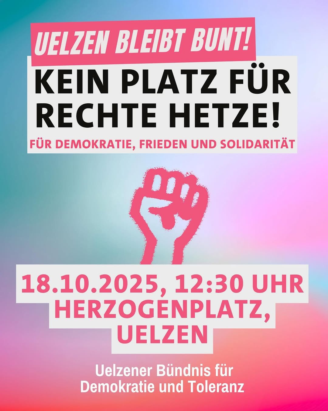 Uelzen ist kein Ort für Hass und Hetze. Zeigt Haltung – laut, bunt und entschlossen!