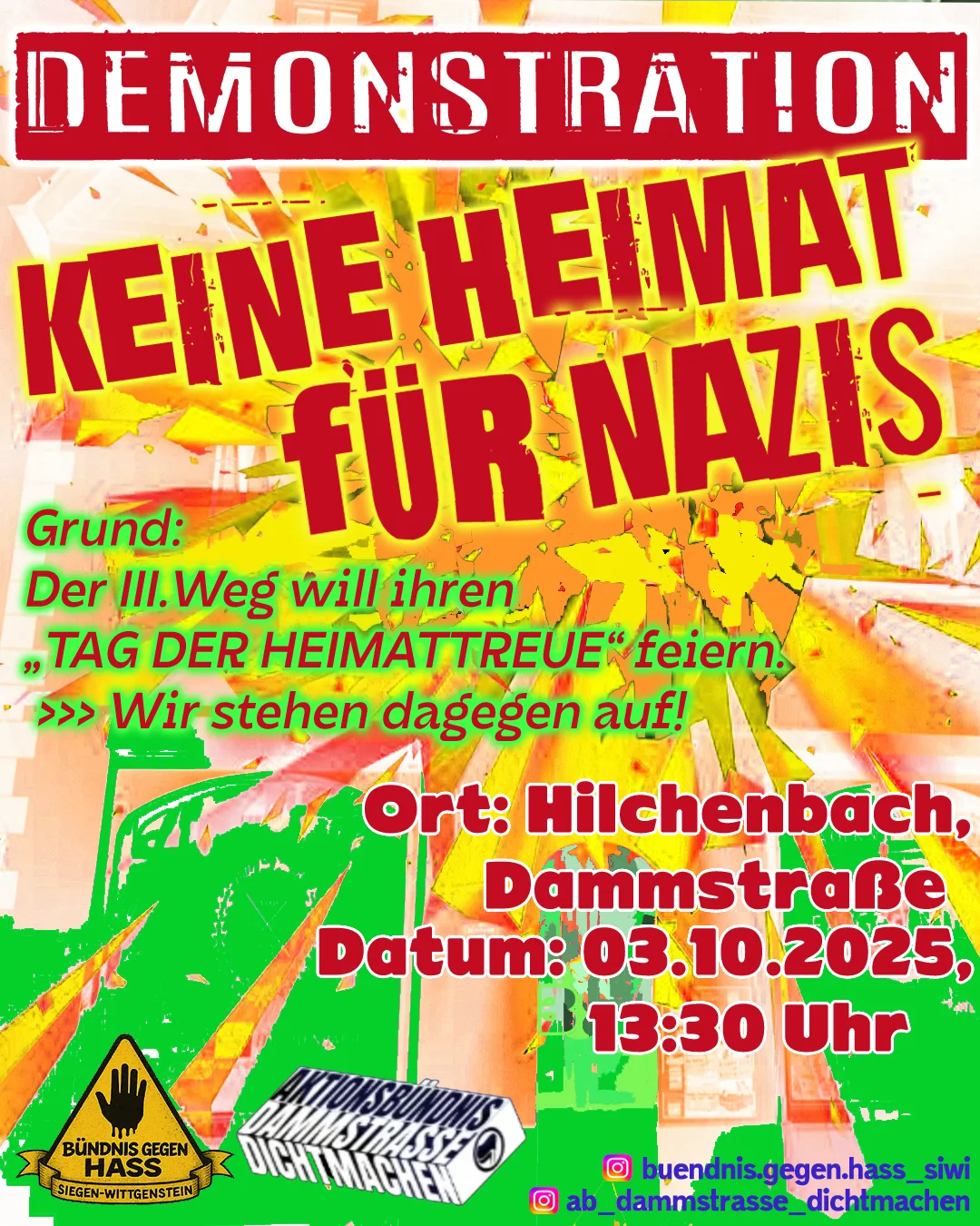Am 03.10 wollen die vom 3. Weg eine Veranstaltung durchziehen. Zum Zweck für ihren “Tag der Heimattreue”. Die Nazis wollen den Tag ab 14 Uhr mit Musik und Aktion in deren Garten feiern.