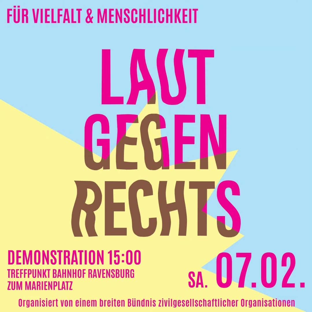Wir, die Zivilgesellschaft, sind mehr, und wir sind laut. Ein Jahr nach den Demonstrationen von Millionen in ganz Deutschland und 10.000 allein in Ravensburg, müssen wir wieder, diesmal noch dringender, ein Zeichen für eine solidarische Demokratie setzen!