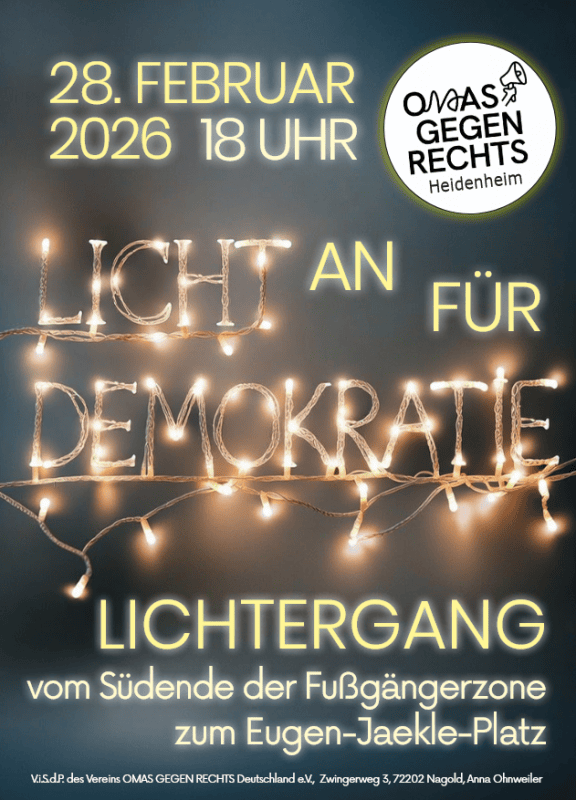Macht mit, zeigt Gesicht, tragt euer Licht für Demokratie hinaus – damit unser Land hell bleibt.
