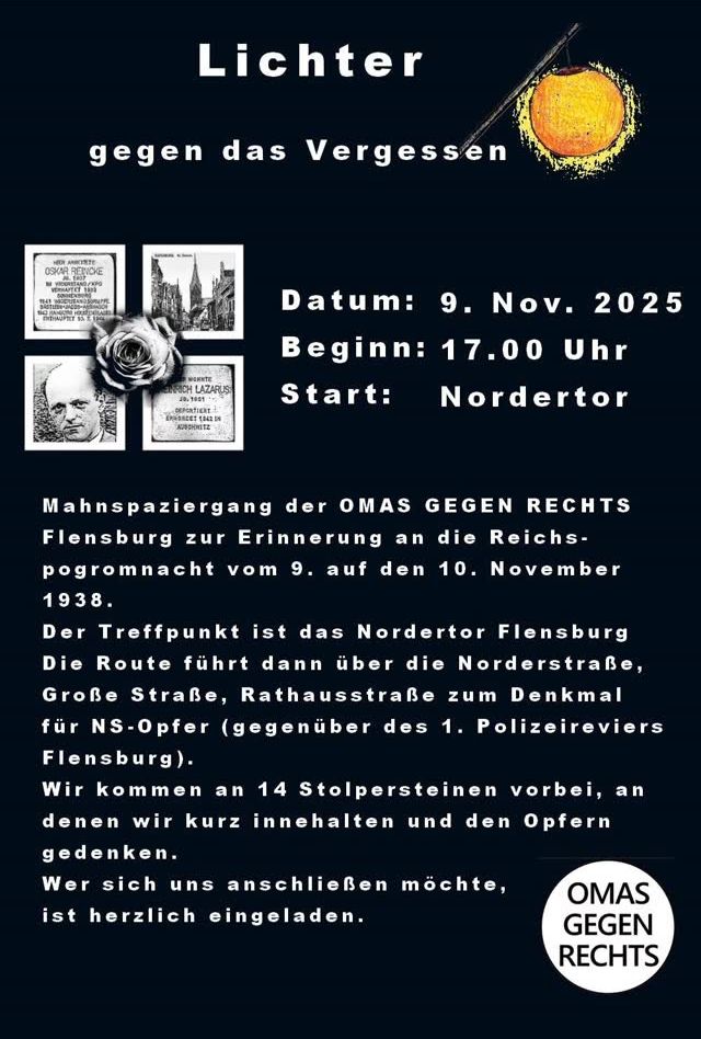 Mahnspaziergang der Omas Gegen Rechts Flensburg zur Erinnerung an die Reichspogromnacht vom 9. auf den 10. November.
