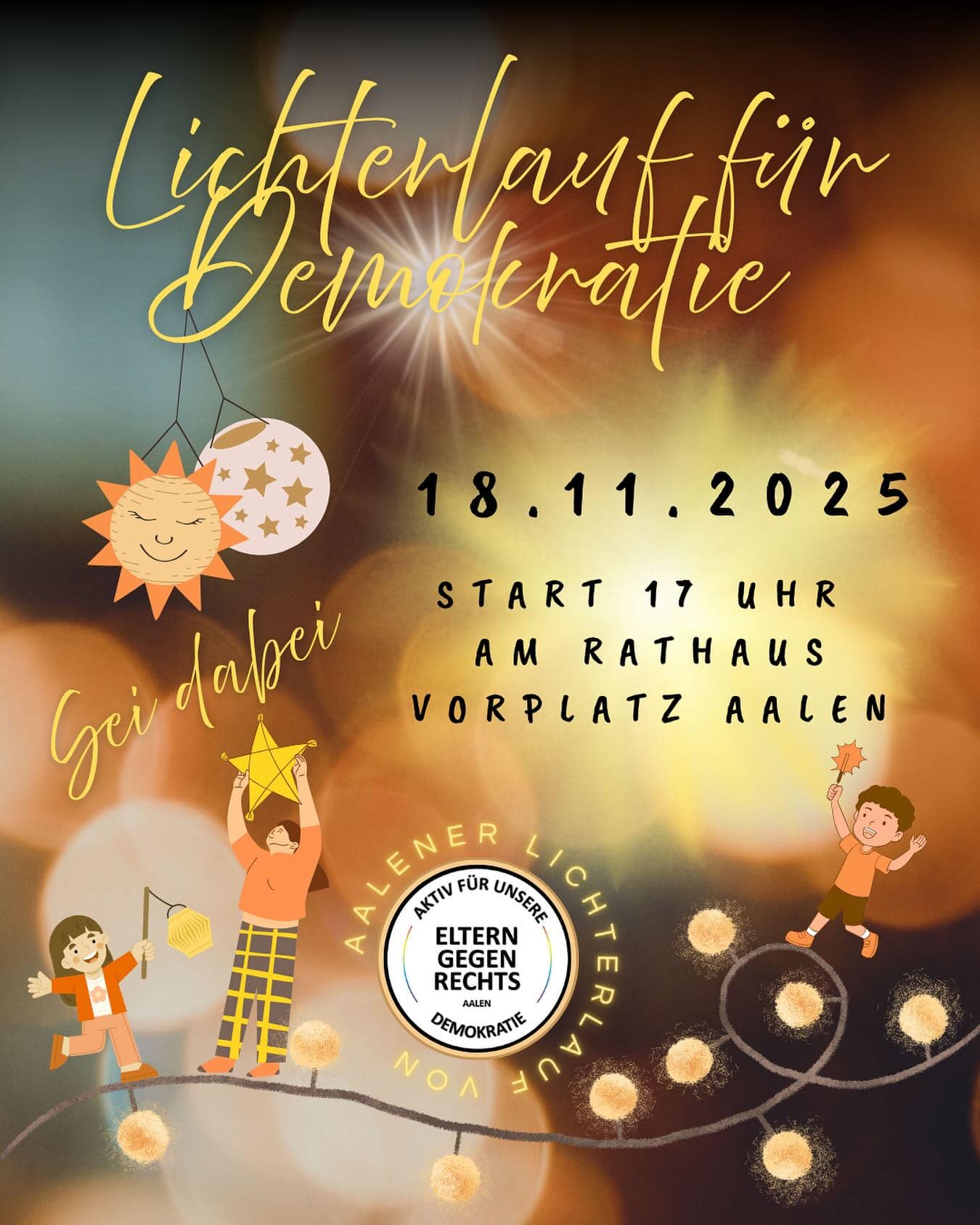 Wir, die Ortsgruppe Eltern gegen Rechts Aalen, laden Euch herzlich zu unserem ersten Lichterlauf ein.