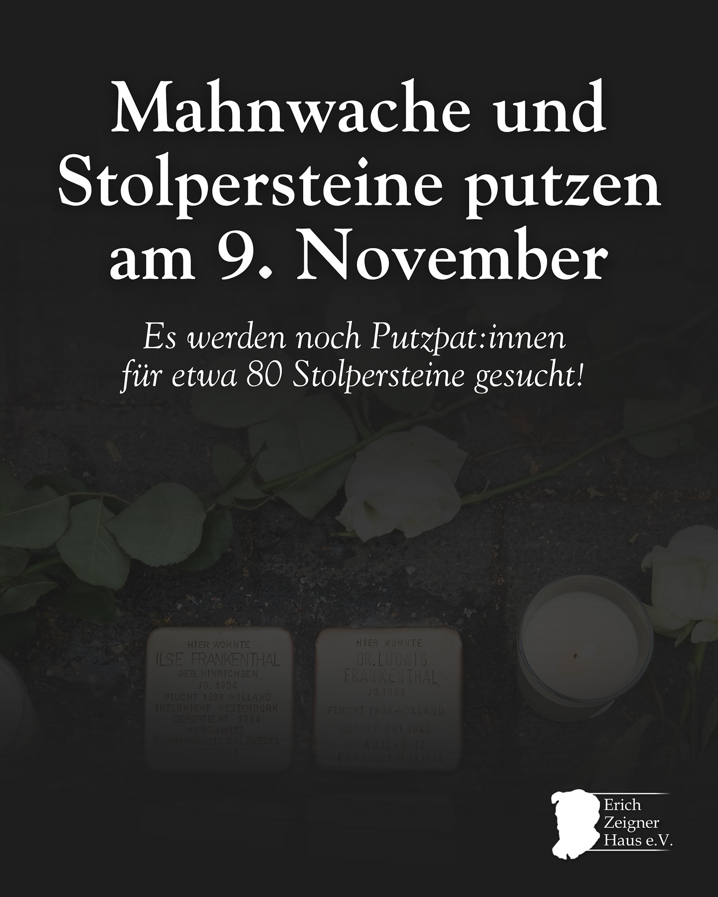 Aus diesem Anlass rufen wir bereits zum 18. Mal zur gemeinsamen Gedenkaktion „Mahnwache und Stolpersteine Putzen“ auf. Zwischen 10 und 18 Uhr laden wir Bürger:innen, Vereine, Initiativen, Schulen und Einrichtungen dazu ein, an den Stolpersteinen in Leipzig Mahnwachen abzuhalten und die Gedenksteine zu reinigen. Aktuell gibt es noch etwa 80 Stolpersteine, welche keine Putzpat:innen haben.