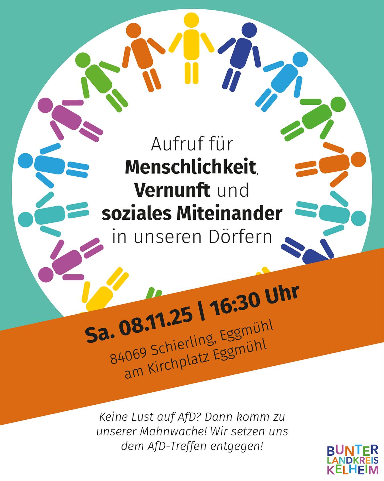 Am Samstag rufen wir auf zu Menschlichkeit, Vernunft und sozialem Miteinander in unseren Dörfern!