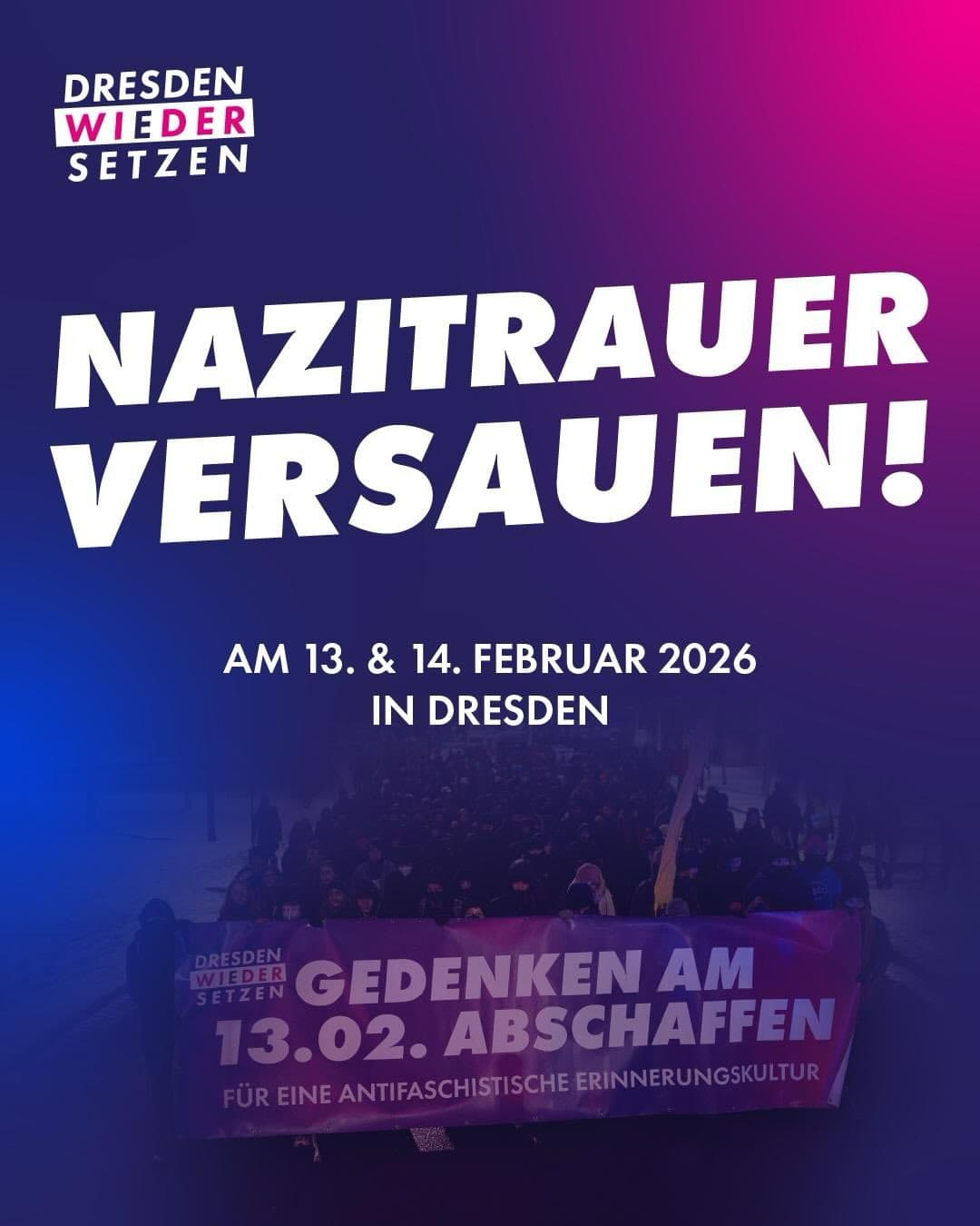 Kommt am Freitag und Samstag nach Dresden, um den Nazis ihre revisionistische Trauershow zu versauen!