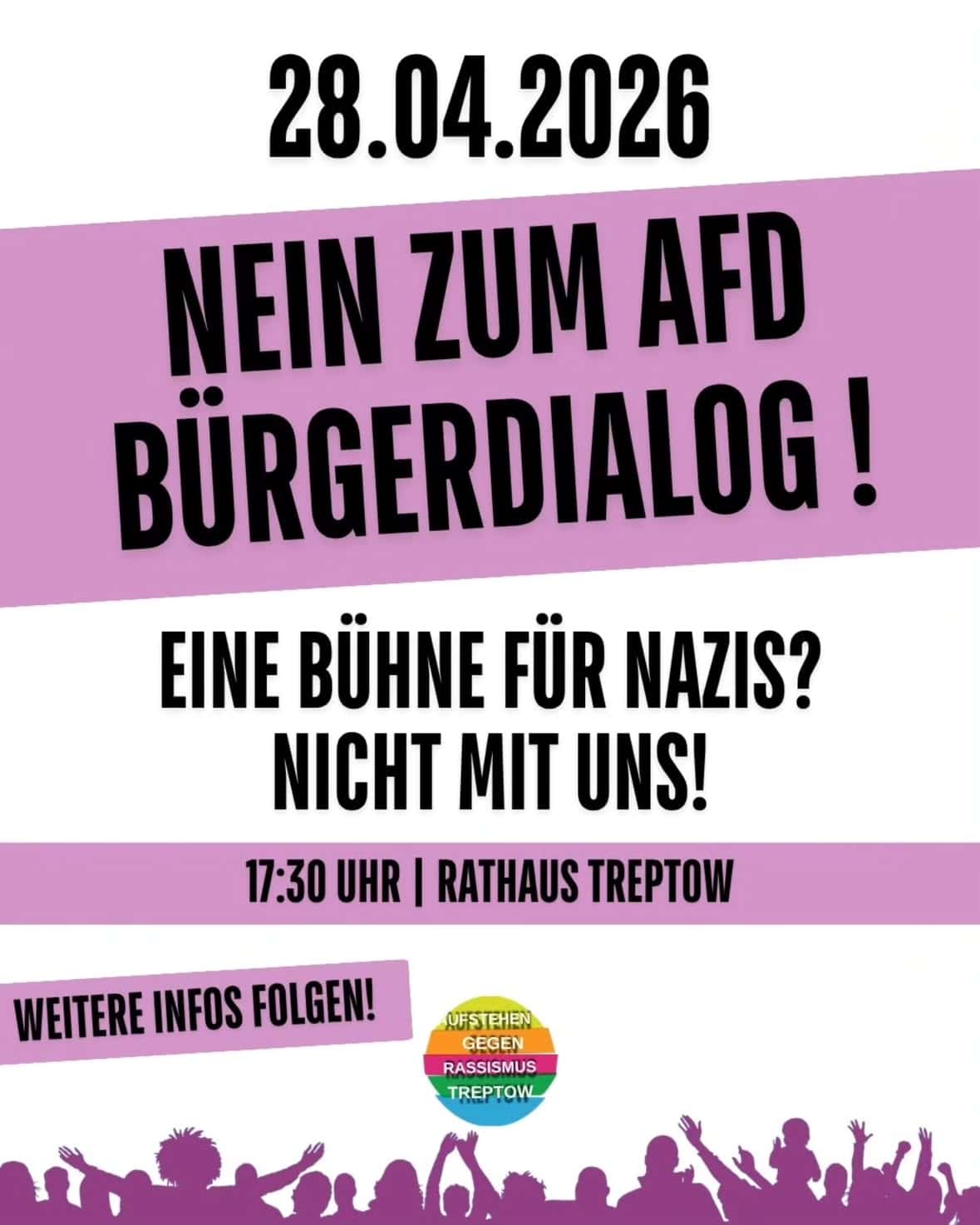 Kommt am Dienstag zum Protest gegen den AfD-Bürgerdialog im Rathaus Treptow.