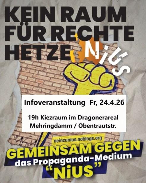 Nach Inputs zur Funktionsweise rechter Hetzportale sollen Aktivist*innen, die Erfahrung mit Nius gemacht haben und ihre Perspektive zu Wort kommen. Miteinander wollen wir dahinterkommen, was die strategische Perspektive von Nius und anderen rechten Krawallportalen ist.