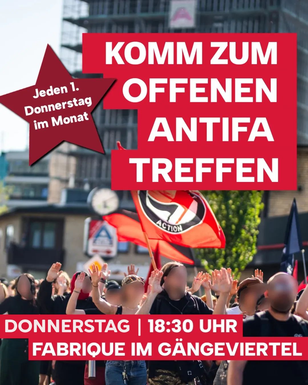 Offenes Antifa Treffen Hamburg  jeden 1. Donnerstag im Monat.