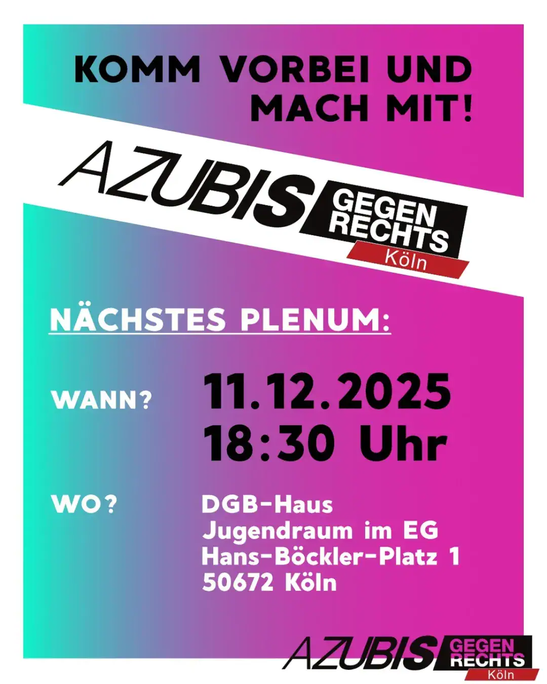 Das nächste Azubis gegen Rechts treffen findet am Mittwoch statt.