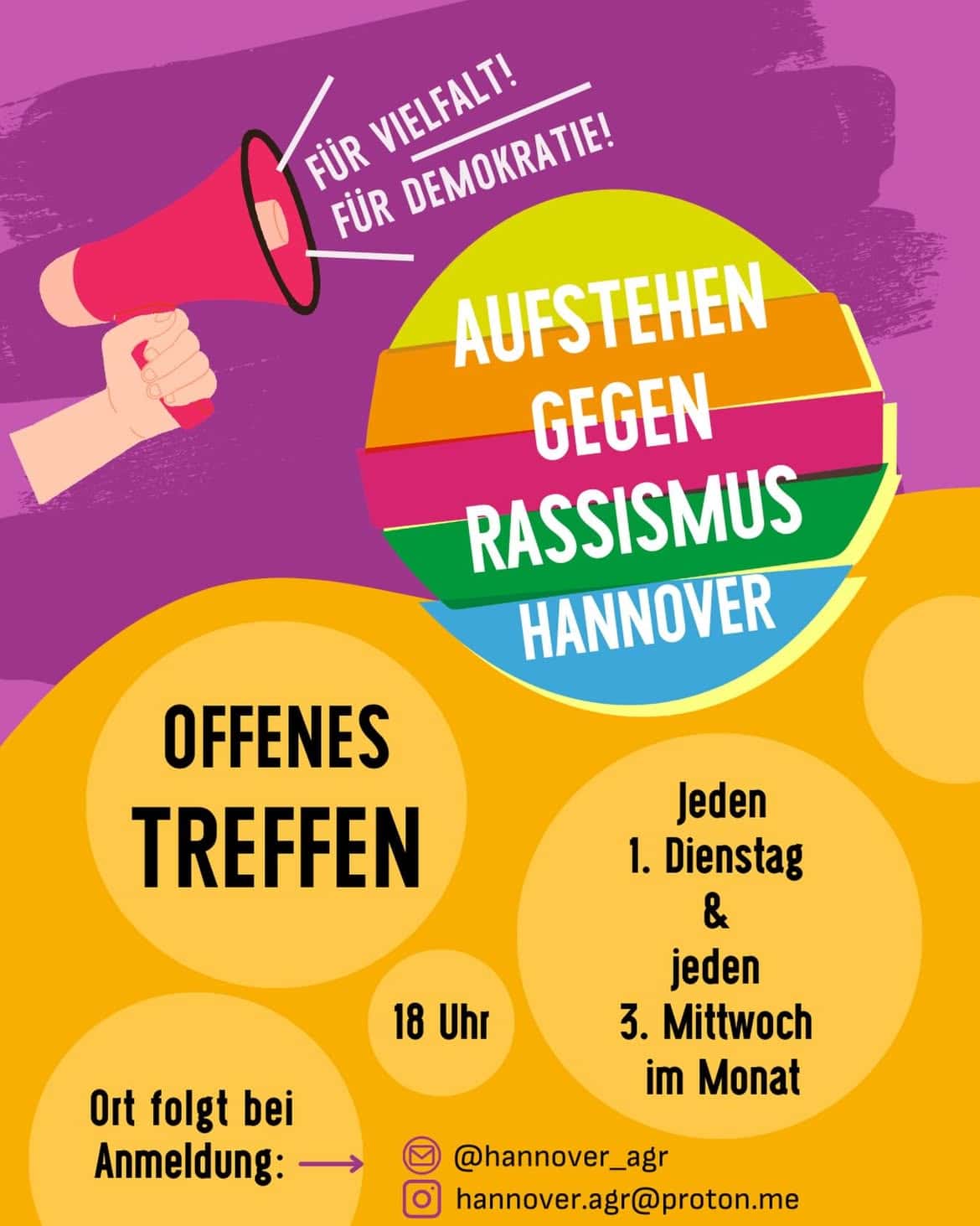 Im Raum Hannover engagieren wir uns ehrenamtlich gegen Rassismus und rechte Hetze. Wir ermutigen jede:n, sich gegen Rassismus und für Respekt, Zusammenhalt und Menschenwürde einzusetzen – sei es am Stammtisch, auf der Straße, am Arbeitsplatz oder im Verein. Wenn du lauter werden möchtest und Position gegen Rassismus beziehen willst, dann schließe dich uns an! Werde Teil unserer Bewegung und engagiere dich gemeinsam mit uns.