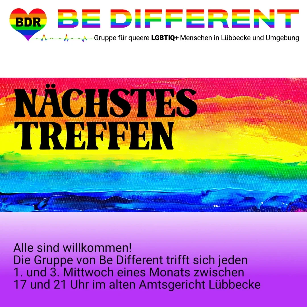 Das Be Different Treffen für LGBTIQ+ Menschen deren Familie und Freunde findet jeden 1. und 3. Mittwoch eines Monats statt.
