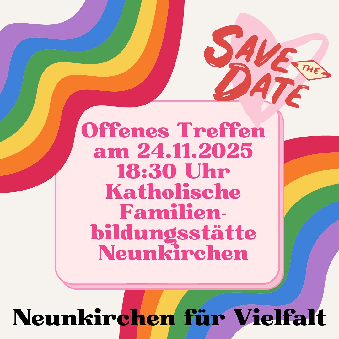 Egal ob du schon länger dabei bist oder einfach mal reinschnuppern möchtest – komm vorbei, bring dich ein und setz mit uns ein Zeichen für Vielfalt, Toleranz und Zusammenhalt in Neunkirchen!