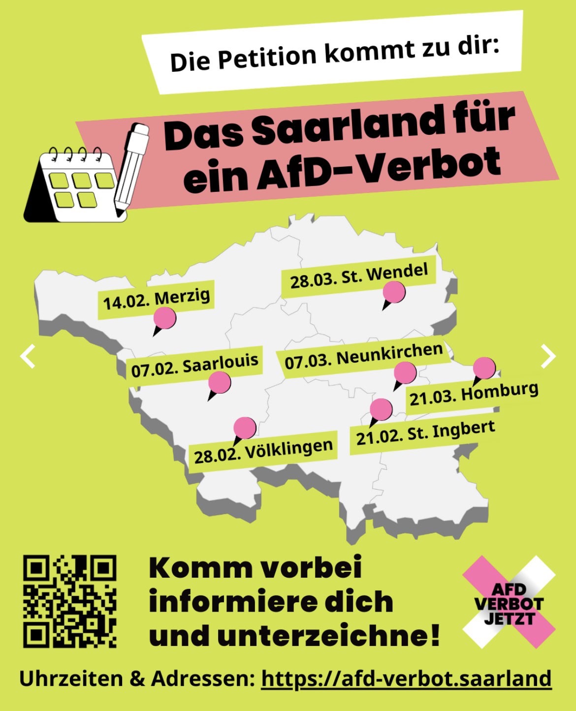 Petition auf Städtetour: Unterzeichne in St. Ingbert „Das Saarland für ein AfD-Verbot“