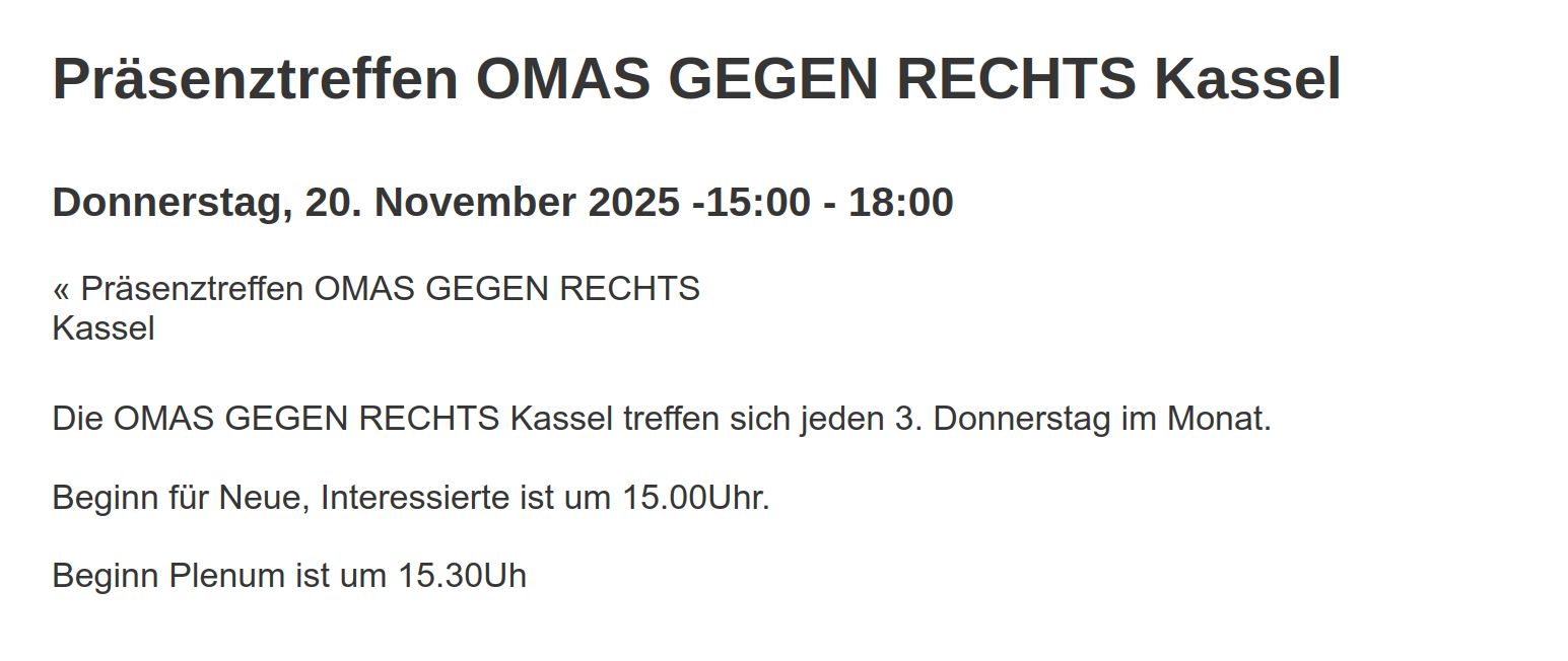 Präsenztreffen der Omas Gegen Rechts Kassel