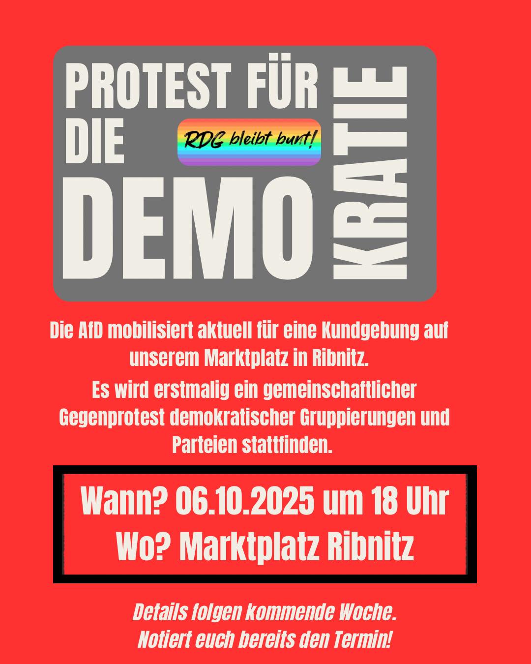 Die AfD mobilisiert aktuell für eine Kundgebung auf unserem Marktplatz in Ribnitz.