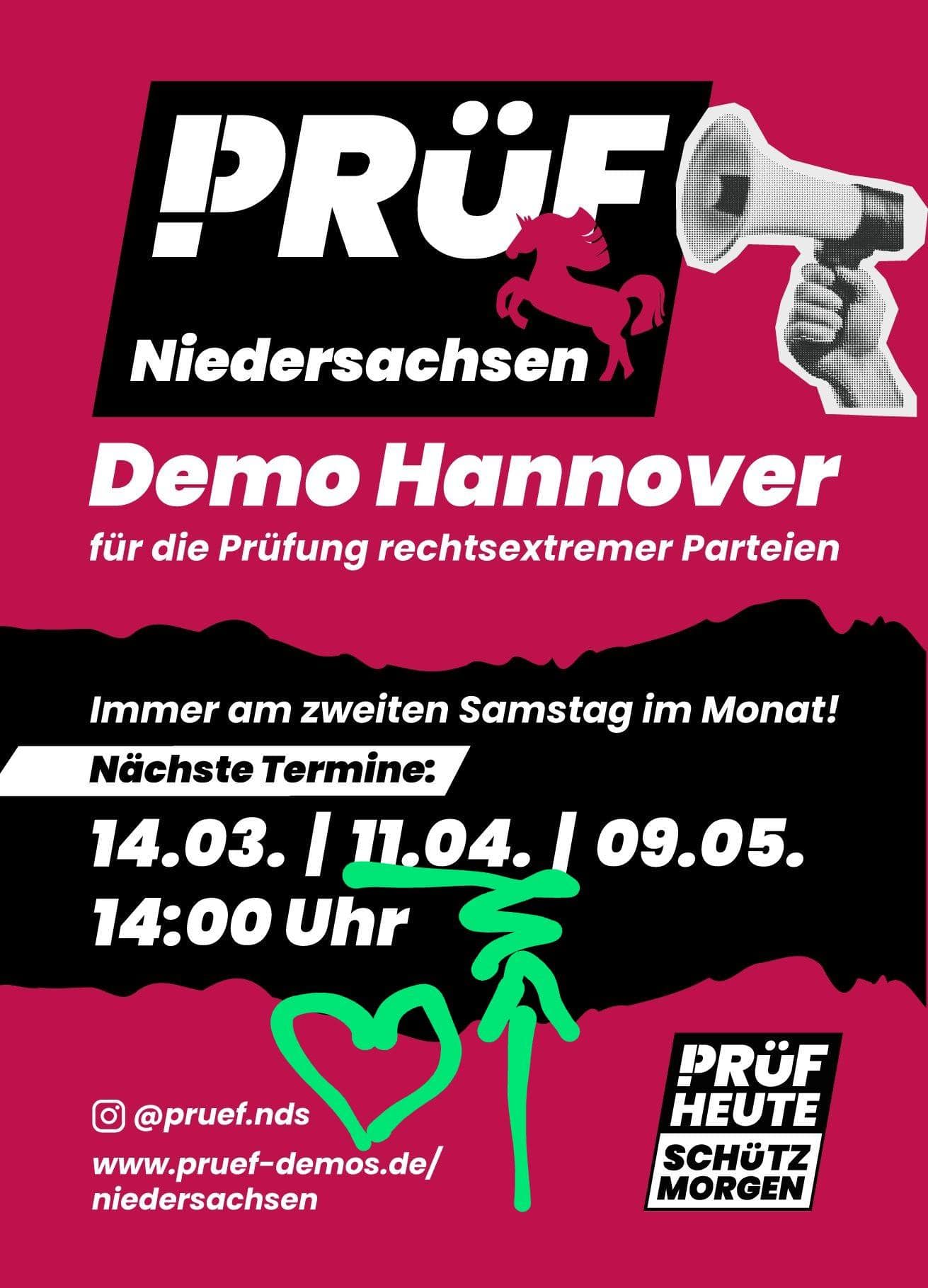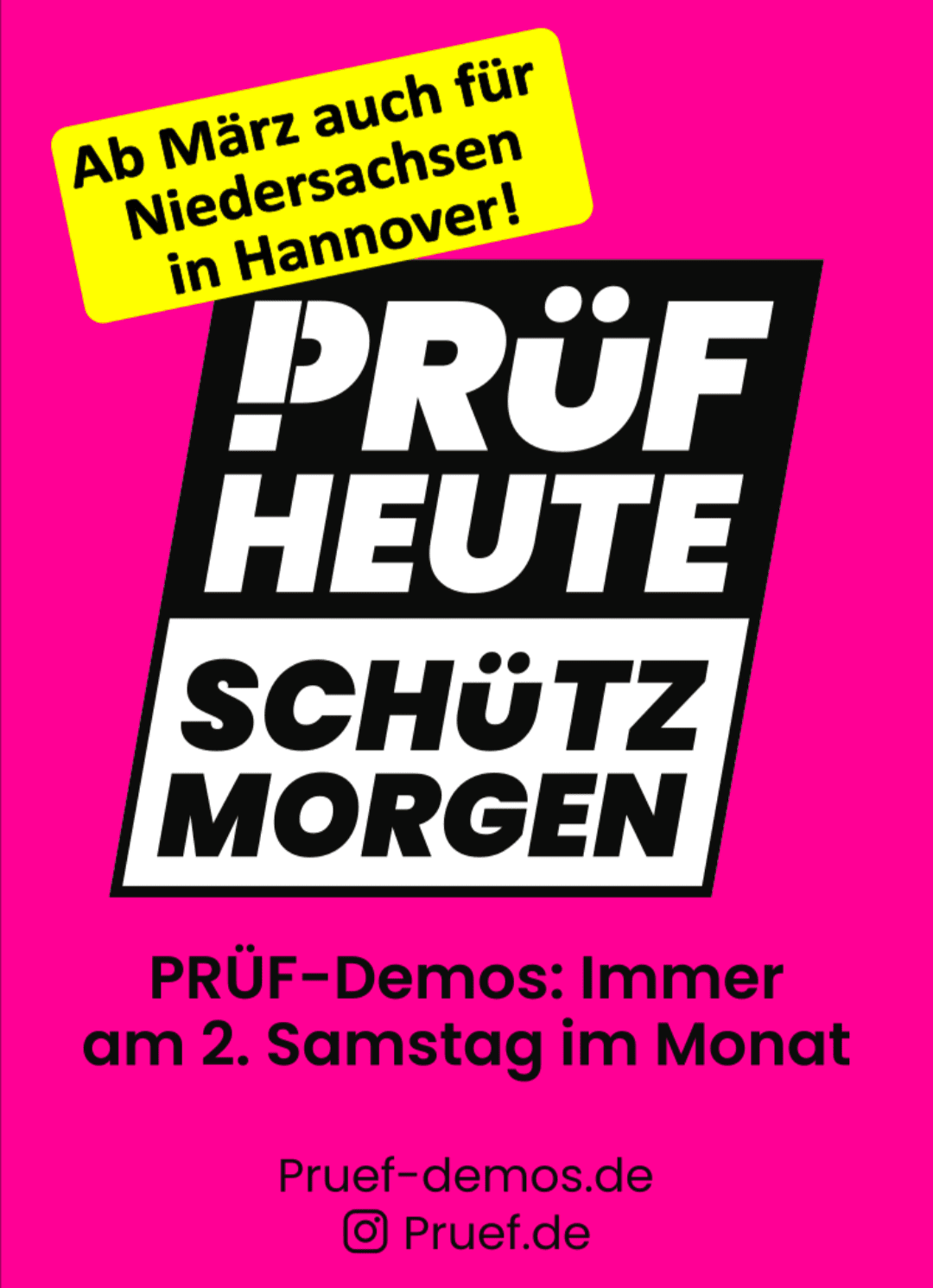PRÜF Demos, immer am zweiten Samstag des Monats.