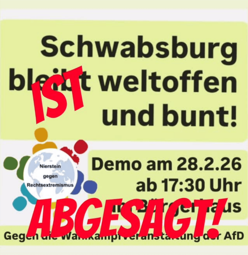 Die Wahlkampfveranstaltung der A*D im Schwabsburger Bürgerhaus findet nicht statt!